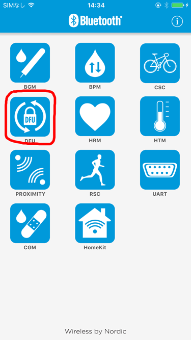 事前に、nRF ToolBox をインストールします。(iphone / Android)