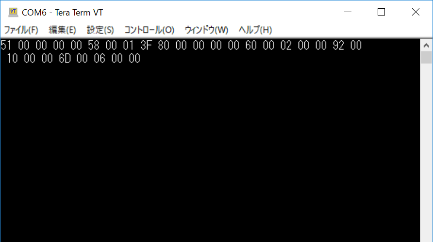 Tera Term では、初期設定の場合 16進数をそのまま表示することができませんので、